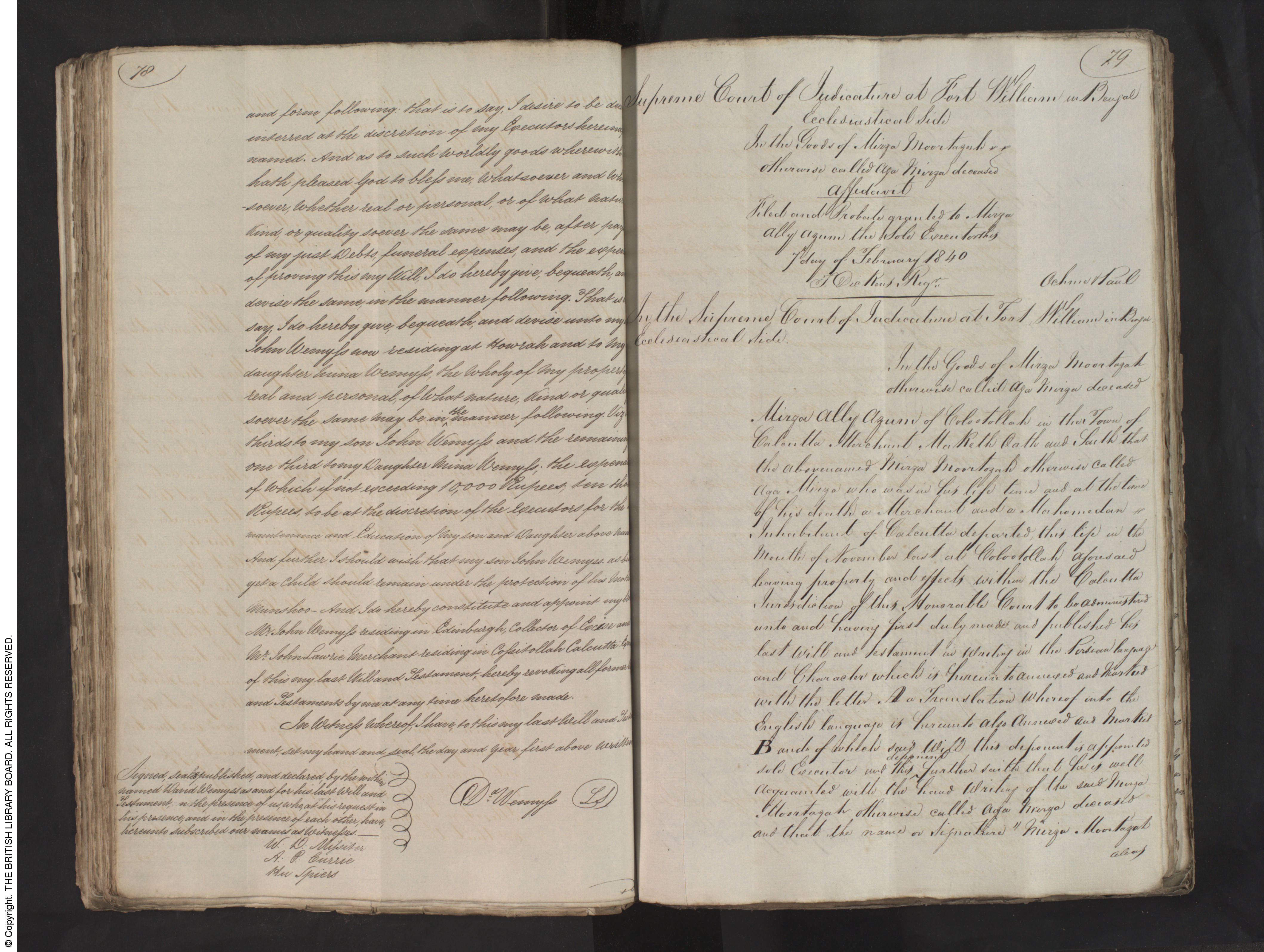 Mina(?) Wemyss, the expends of which if not exceeding 10,000 rupees, ten thousand rupees, to be at the discretion of the executors