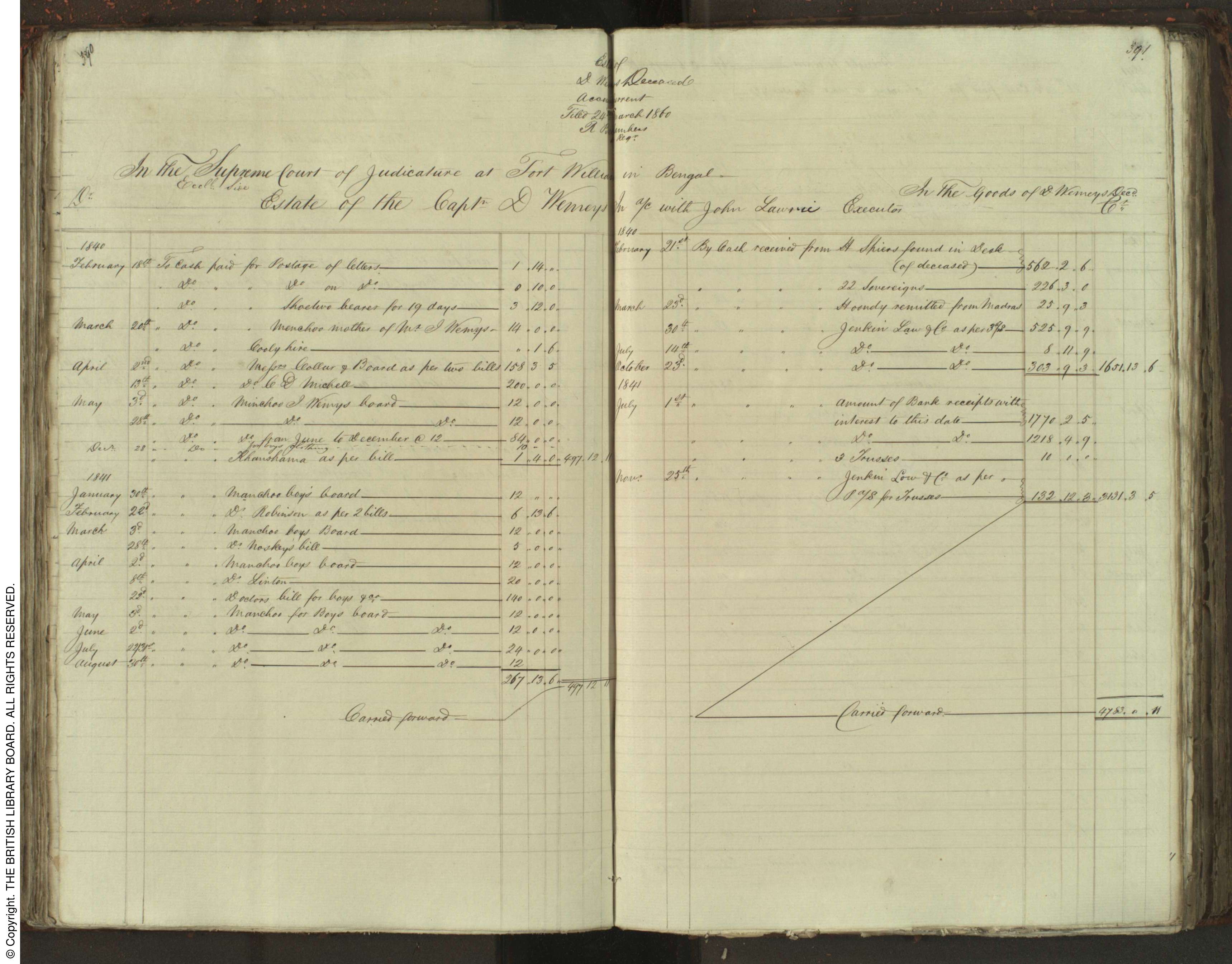 received a monthly allowance of 12 rupees for John’s board plus other expenses as required. All the money was gone by March 1860.