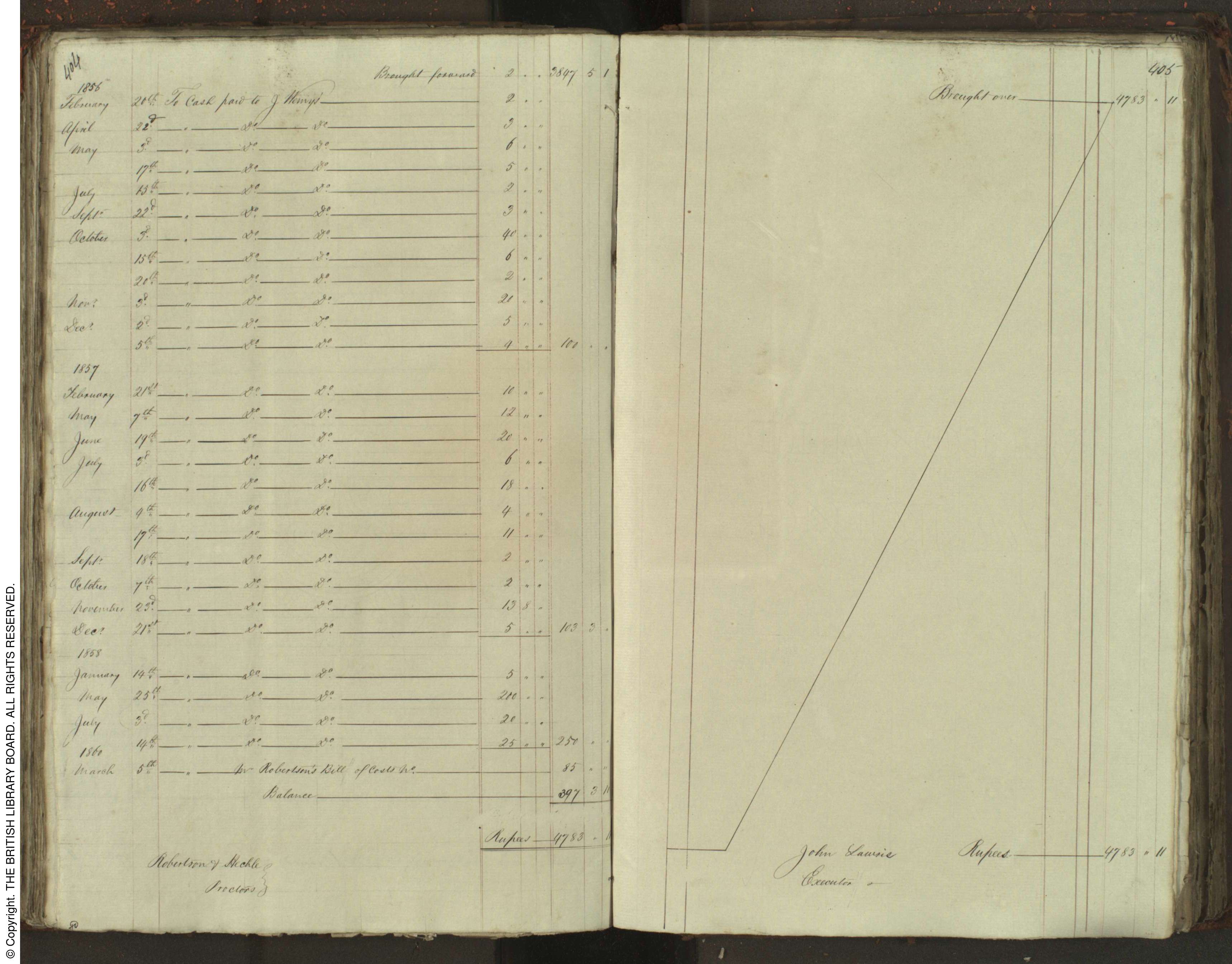 The estate of David Wemyss was managed by a firm of solicitors, Messrs. Lawrie and Co. The estate was valued at 4,783 rupees.
