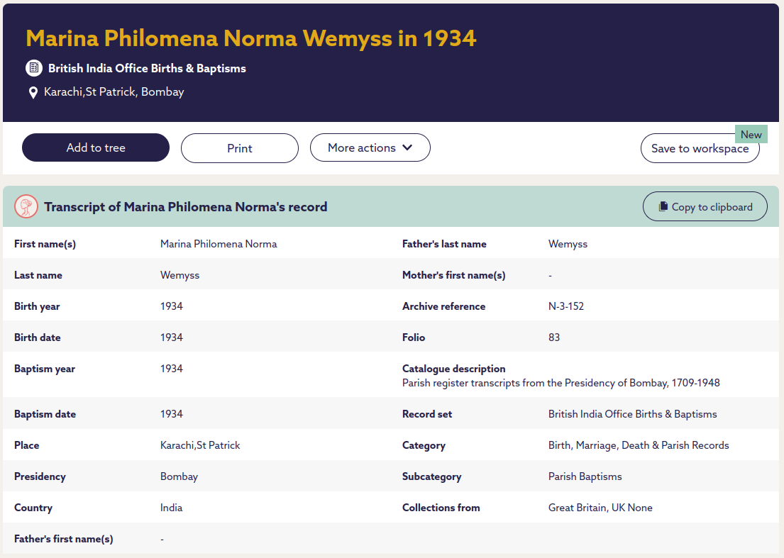 | Son | James Anthony Wemyss | 31/08/1932 | 01/12/1955 | June Rosemary Huntley | 06/02/2005 | Swindon, UK |