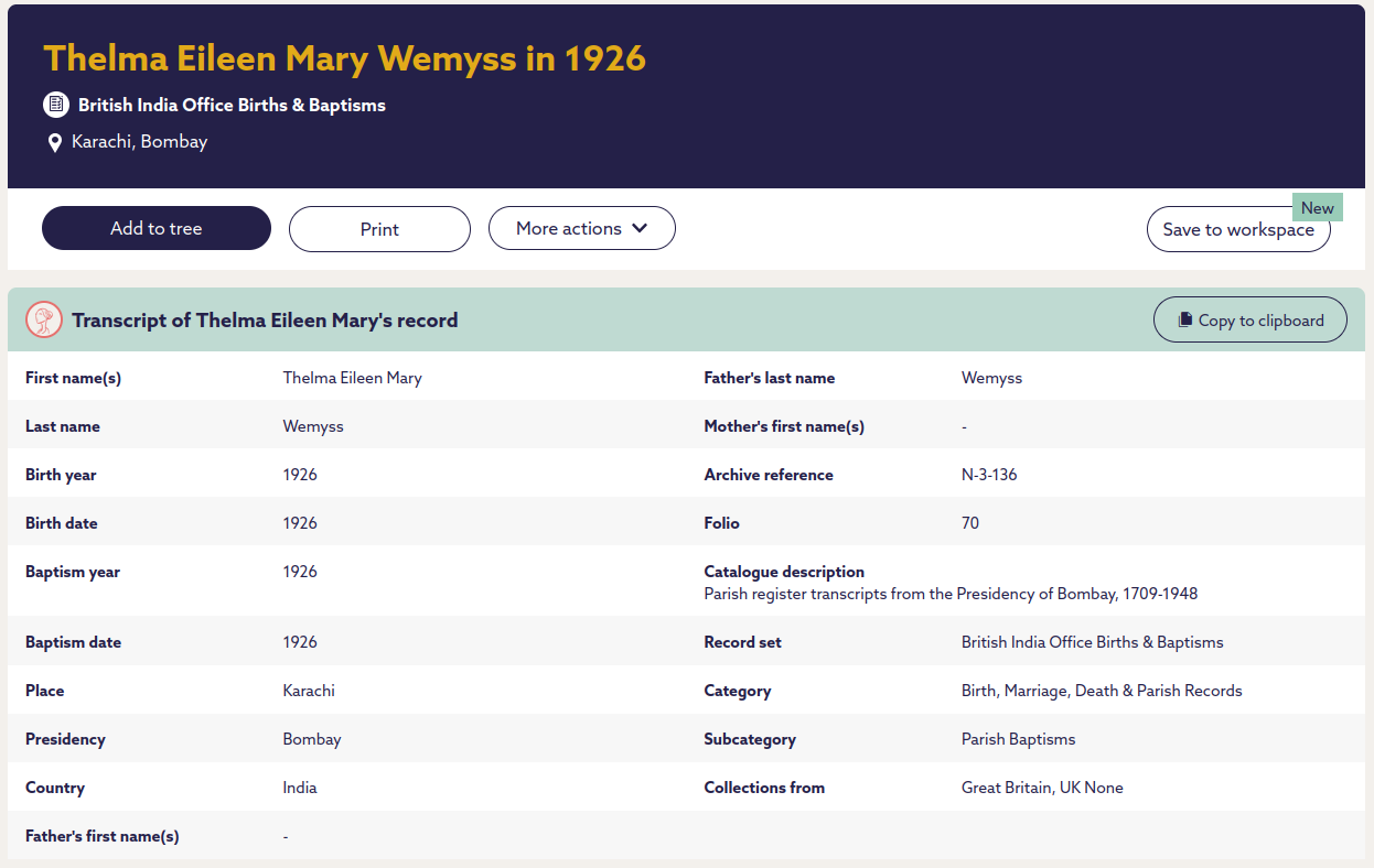 | Dau | Thelma Eileen Mary Wemyss | 24/06/1926 | 24/06/1946 | Basil Frederick Willis | 04/04/2019 | Swindon, UK |