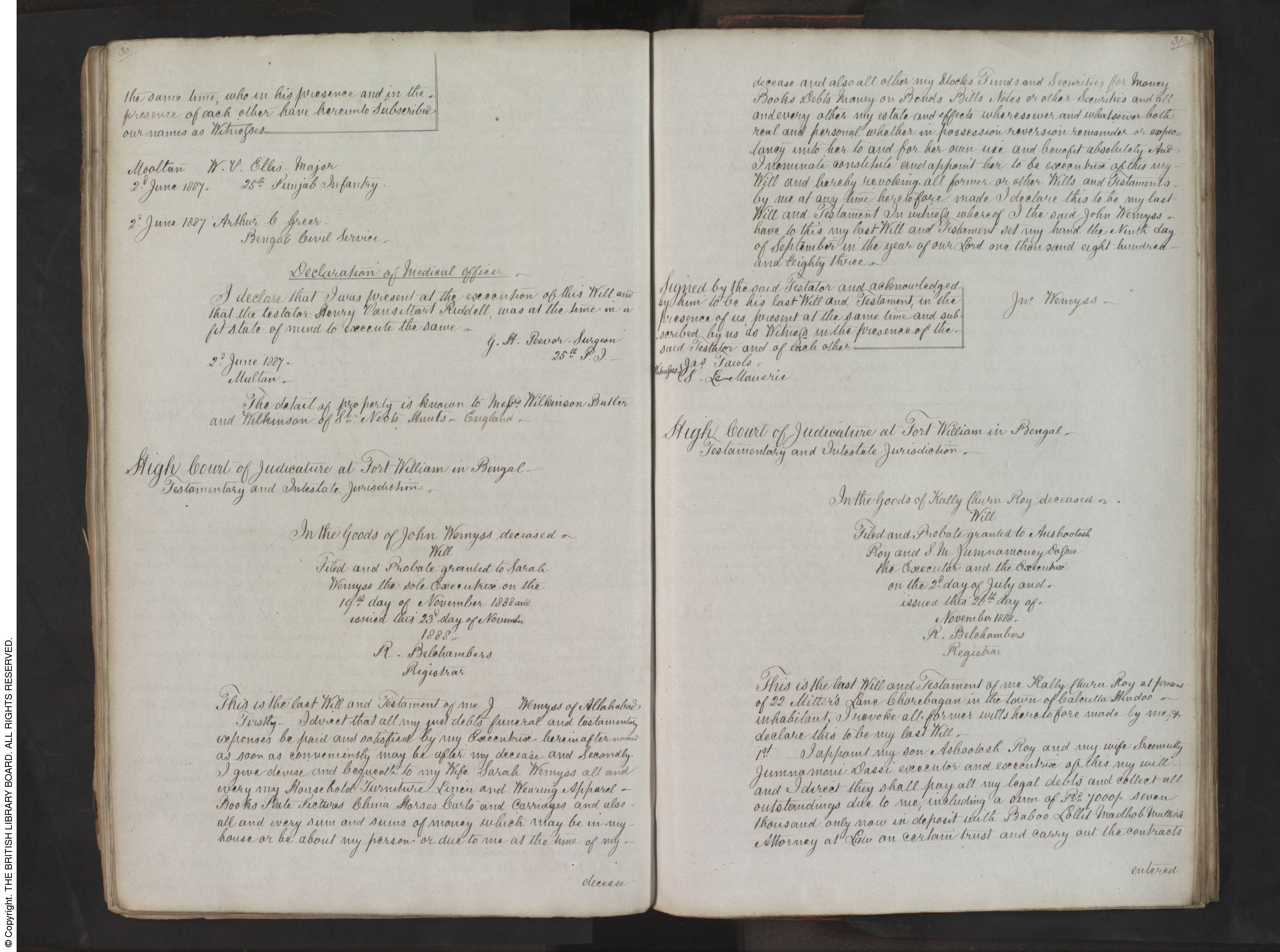 This is the last will and testament of me, J Wemyss, of Allahabad.